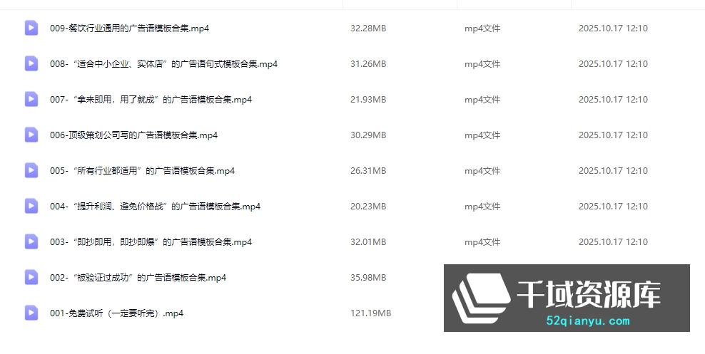 千域资源库 | 广告语,学会抄!教你抄被验证过的广告语,谁抄谁卖爆[MP4/351.48MB]百度网盘
