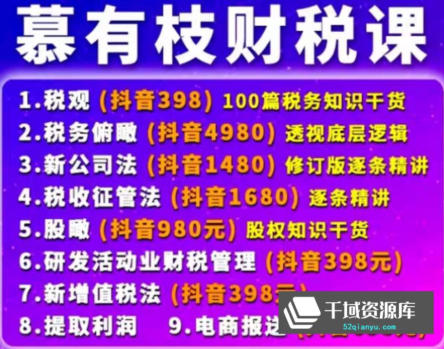 ![2025慕有枝财务财税管理课程合集《税收征管法》《财务俯瞰》《增值税法》电商直播等[MP4/238.26GB] - 千域资源库 2025慕有枝财务财税管理课程合集《税收征管法》《财务俯瞰》《增值税法》电商直播等[MP4/238.26GB] - 时光很长,伴你一同成长。](https://52qianyu.com/wp-content/uploads/2024/02/937d445031f99ad-1-320x320.jpg)
