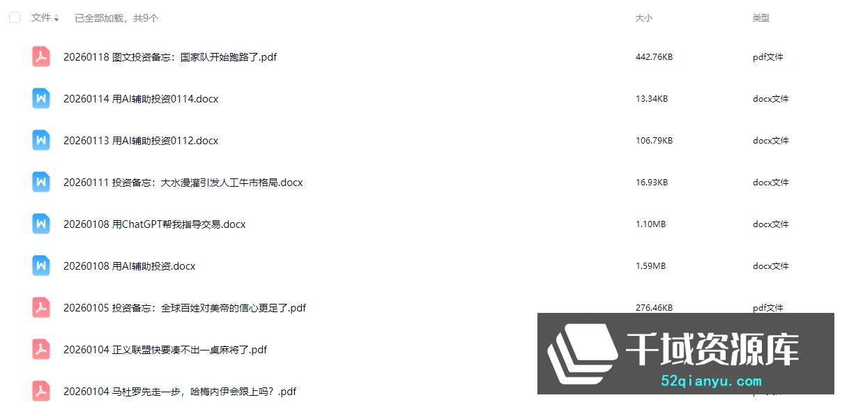 ![2023-2026《老端精选文集》(更新中)一份穿越牛熊周期的思想藏宝图[PDF/274.15MB]百度网盘 - 千域资源库 千域资源库 | 2023-2026《老端精选文集》(更新中)一份穿越牛熊周期的思想藏宝图[PDF/274.15MB]百度网盘](http://52qianyu.com/wp-content/uploads/2026/01/2c8e980e51bd823.jpg)