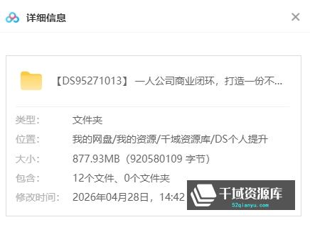 ![鲁细细一人公司商业闭环:从 0 到 1 打造不受年龄限制的个人事业《2026 实操版》[MP4/877.93MB]百度网盘 - 千域资源库 千域资源库 | 鲁细细一人公司商业闭环:从 0 到 1 打造不受年龄限制的个人事业《2026 实操版》[MP4/877.93MB]百度网盘](http://52qianyu.com/wp-content/uploads/2026/04/df1d77d630d0844.jpg)